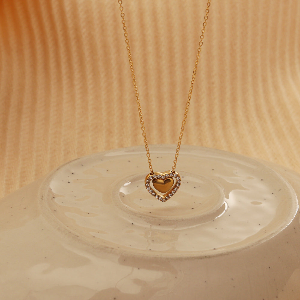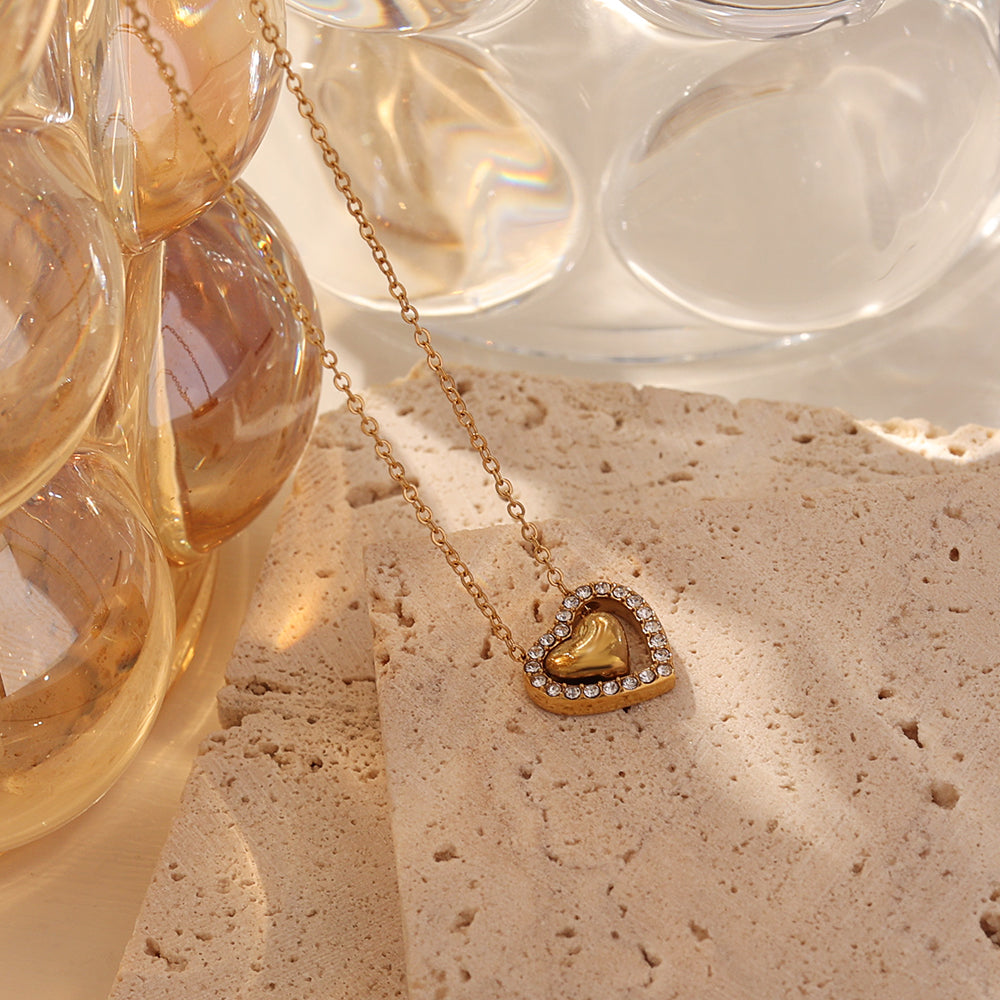Cadena de 40 cm + 5 cm en Acero inoxidable de alta calidad con revestimiento PVD oro 18 K; un colgante de cristal facetado que concentra el primer rayo de sol en un destello dorado.