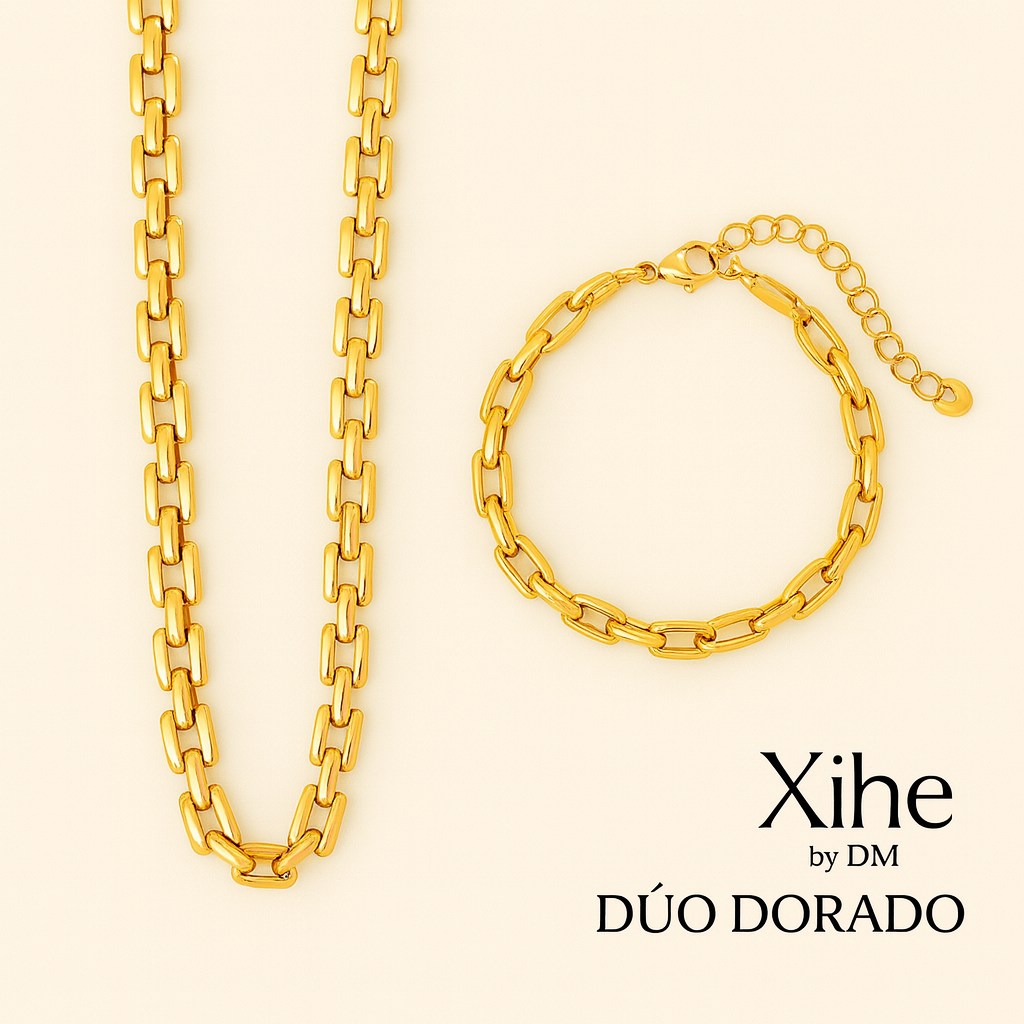 El Dúo Dorado es un set que ofrece un brillo intenso y vibrante en tonos dorados, diseñado para transformar y realzar cualquier outfit. Perfecto para mujeres que buscan una joyería fresca y actual, este set aporta un toque de elegancia y luminosidad que destaca en cualquier ocasión.