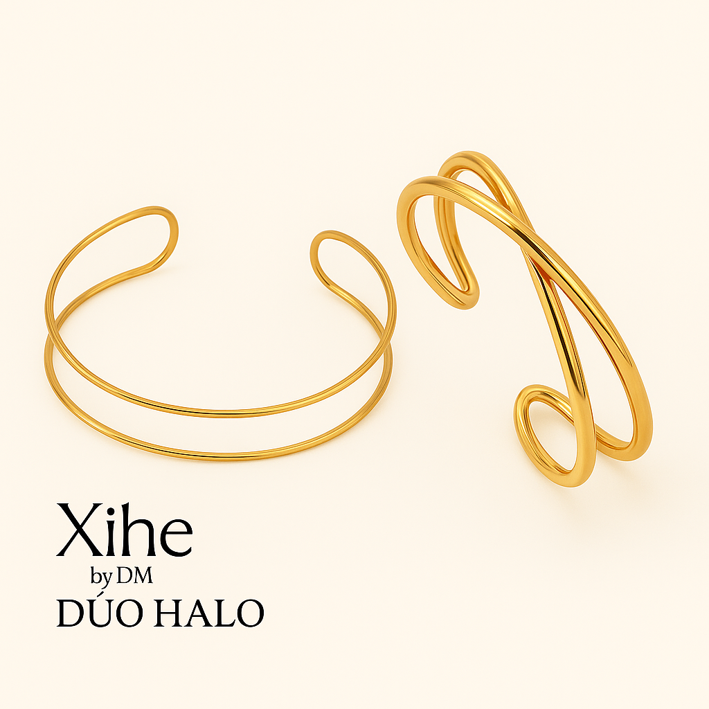 Descubre el Dúo Halo, un set creado para aportar un brillo dorado intenso que transforma cualquier outfit. Perfecto para realzar tu estilo con un toque fresco y moderno, este dúo es la elección ideal para mujeres que buscan añadir elegancia y luminosidad en cada ocasión.